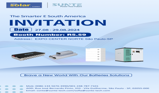 SUNTE will join the exhibitions for The Smarter E South America in August 2024 in Brazil.
